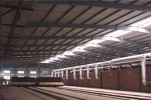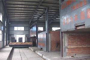 Tunnel kiln consists of foundation, kiln chamber body, kiln gate, kiln cart, heat transfering pipe system, inside ventilation system, traction system, temperature control system, natural gas/oil buring system.