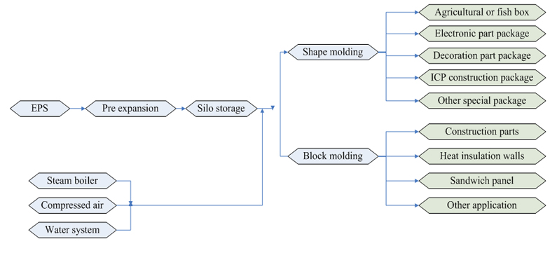For a complete EPS shape molding production line, there are 5 manufacturing stages: